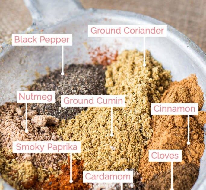 The pre-mixed blend saves time and ensures consistency, but if you’re making it from scratch, use 1 tablespoon coriander, 1 tsp cumin, 1/2 tsp each of black pepper and turmeric, 1/4 tsp ground cardamom, and a pinch of cinnamon.