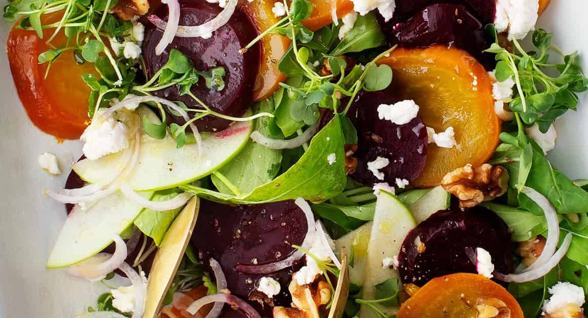 Arrange the roasted beets in a circular pattern for visual impact.